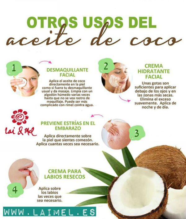 Gracias a su excelente calidad este Aceite de coco virgen Extra es beneficioso tanto para utilizar en la cocina como para el cuidado del cabello, la piel y los dientes