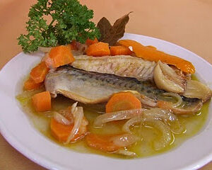 La caballa es un pez teleósteo perteneciente a la familia de los escómbridos, orden de los peciformes. Abunda en el océano Atlántico y en el mar Mediterráneo siendo objeto de una fuerte pesca debido a su apetecible carne. Se alimenta de otros peces de menor tamaño, crustáceos y moluscos. En tiempos invernales la caballa permanece a unos 170 m de profundidad, pero cuando se acerca el buen tiempo, suelen agruparse en bancos muy numerosos y subir a la superficie. Una hembra puede poner entre 200.000 y 400.000 huevos que eclosionan a los pocos días. En el Mediterráneo se encuentra Scomber japonicus colias, caracterizado por sus grandes ojos y por una serie de manchones verdes que recubren la parte superior y los costados del cuerpo del pez. Historia de la caballa y su pesquería: El origen del consumo de la caballa o verdel se remonta a la prehistoria, ya que en varias cuevas y abrigos de países ribereños del Mar Mediterráneo se han encontrado restos que atestiguan el consumo de estos peces por parte de habitantes esporádicos de estos lugares durante el periodo Paleolítico, Epipaleolítico, Neolítico y Edad de los Metales. Entre los restos hallados existen piezas de hueso semejantes a modernos arpones o anzuelos de pesca, de lo que se deduce el consumo recurrente de caballa entre sus habitantes. La caballa forma parte de algunas recetas conocidas desde el I milenio a.C., pero serían los griegos, en el siglo IV a.C. quienes comenzarían a sacar partido a la comercialización de los productos elaborados a partir de la caballa, denominada por ellos garo. Se trataba de una salsa que más tarde adaptarían los romanos a su gastronomía llamándola garum. Pronto se convirtió, durante el Imperio Romano, en algo más que una receta gastronómica, aportando a la industria y el comercio grandes cantidades de dinero. Era muy utilizada por la alta sociedad para condimentar sus recetas.