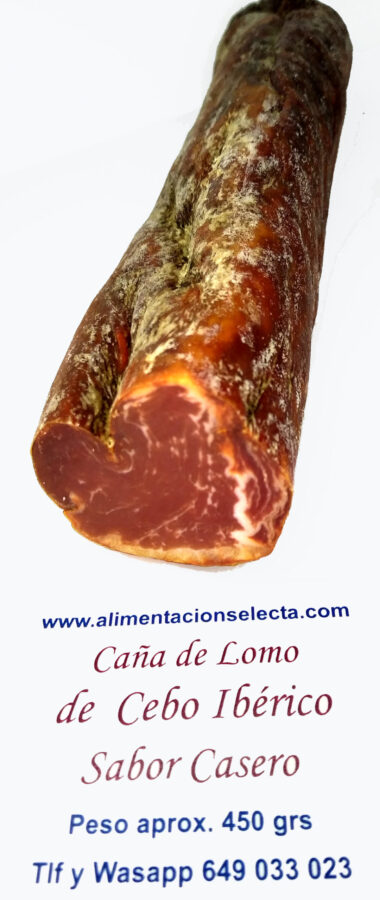 Caña de lomo Ibérico Sabor Casero pieza de 450 gramos aprox de pura delicia Ibérica elaborada con los mejores Cerdos Ibéricos de nuestras dehesas Puro Lomo Ibérico Garantizado
