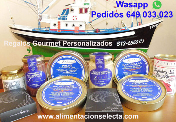 Si Usted quiere comprar Cestas de Navidad y Regalos Originales Gourmet de verdad, puede seleccionar entre nuestra amplia oferta para incluir en su Cesta Anchoas, Bonito, Ventresca, Mejillones, Almejas, Berberechos, Sardinillas, Pimientos de Piquillo, Espárragos de Navarra, Salchichón, Chorizo, Lomo Ibérico, Miel, Guindillas ó Piparras, Orujo de distintos sabores, Vermouth de solera artesano de verdad, Boquerones en vinagre, Tabla de Quesos, etc, etc…