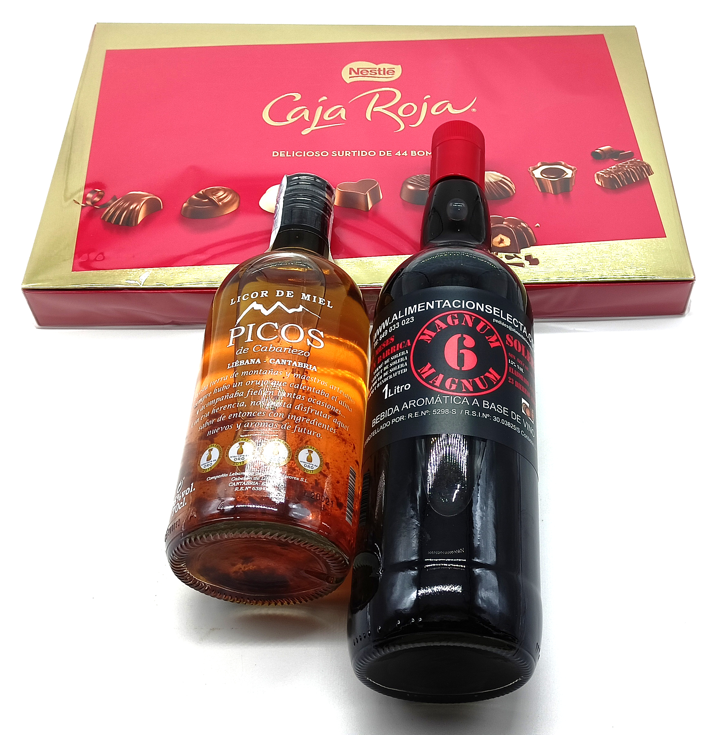 Si Usted quiere comprar el Mejor Regalo para el DÃa de la Madre el Mejor Regalo para San ValentÃn comprar el Mejor Regalo para una Mujer comprar el Mejor Regalo para el Cumpleaños de una Mujer comprar el Mejor Regalo para Mamá con los Mejores Productos Gourmet Españoles aquà le presentamos un lote de regalos con excelentes productos que harán las delicias de Mamá de su Novia de su Mujer Esposa pareja Excelentes Regalos que agradarán seguro el paladar de su pareja amiga familiar compromiso etc. Este lote de Regalos Especiales para las mamás las Mujeres las Esposas las Novias los Cumpleaños está compuesto por 1 caja de Bombones Nestle de 400 grs 1 Botella de Vermouth Artesano de 1 litro  y 1 Botella de 70 cl de Orujo Artesano con 6 sabores a elegir Orujo Blanco, Crema de Orujo, Orujo de Hierbas, Orujo de Miel, Crema de Orujo ó Licor de Café que hará las delicias de cualquier buena Gourmet.