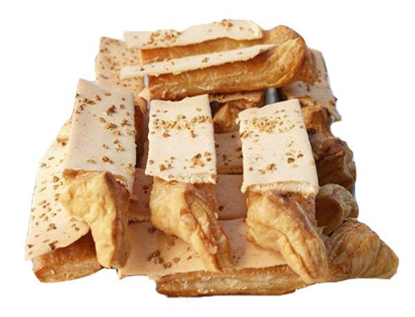 Corbatas de Unquera con el mejor sabor en su textura, delicioso postre tradicional de Cantabria, compuesto de un riquísimo hojaldre y una capa de almendras por encima, donde cada corbata va presentada al vacío en su interior, para que puedan comer de una en una sin que al abrir el paquete se estropeen las otras corbatas.