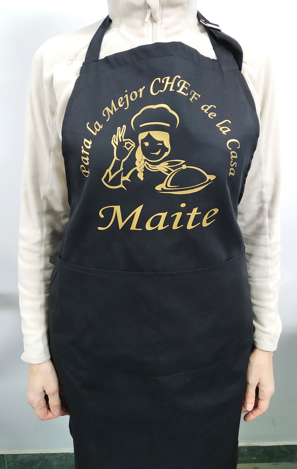 Garantizamos la Calidad y SerigrafÃa de todos nuestros delantales personalizados de cocina asà como su confección a medida una vez que Amazon nos pasa sus datos para elabo0rar el pedido nosotros nos ponemos en contacto con Ustedes y confeccionamos el diseño a su gusto según el nombre propuesto y la cantidad requerida de delantales