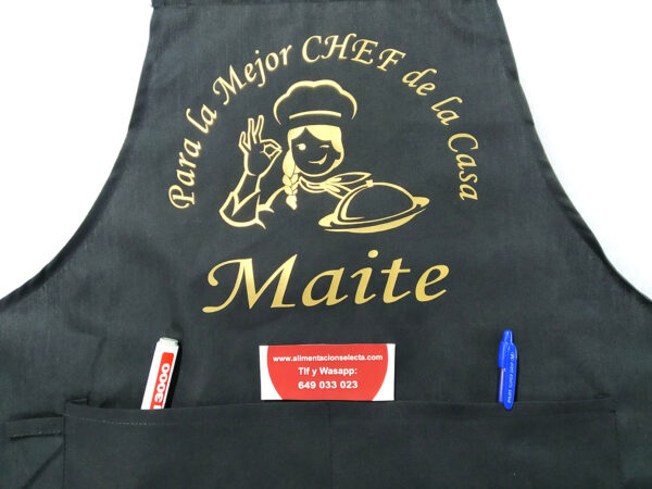 Cada Delantal Personalizado es original y se fabrica uno a uno bajo pedido atendiendo a sus gustos de colores de serigrafÃa color de delantal y nombre a imprimir según el diseño por Ustedes escogido